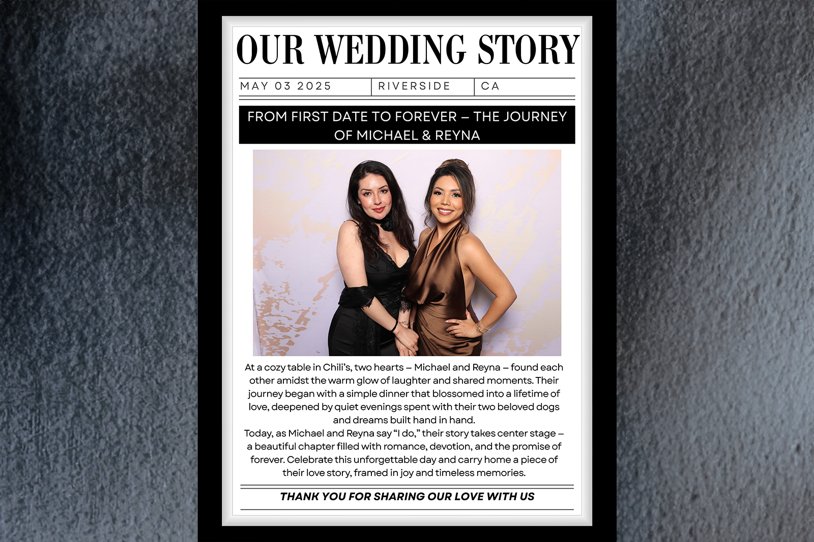 From concept to execution - Whether it’s a personalized photo template, a signature backdrop, or an entirely unique experience, we curate every detail of your photo booth experience to embody the modern elegance of your celebration and brand identity.